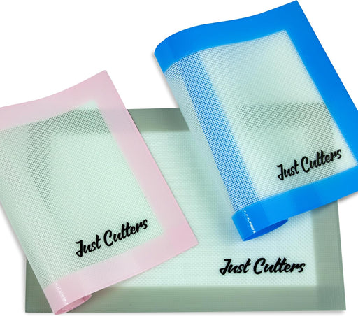 Just Cutters Pack of 3, 30x20cm. Thick Durable Reinforced Silicone Baking Mats | Oven-Proof Non-Stick Washable Bakeware Tray Liners for Cookies, P...